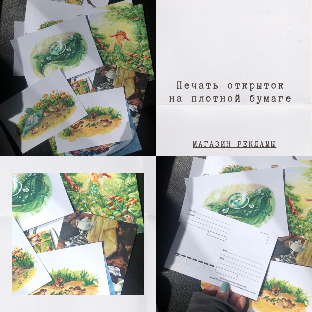 Вы можете заказать открытки различных форм и размеров. Это могут быть классические открытки с односторонней или двусторонней печатью, изделия с одним или двумя фальцами (сгибами) квадратной или прямоугольной формы. Вы можете заказать дополнительную постпечатную обработку, например, матовую или глянцевую ламинацию.